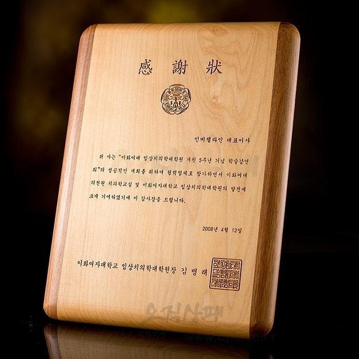 • 원목 가공 후 전면에 레이저로 문안 각인