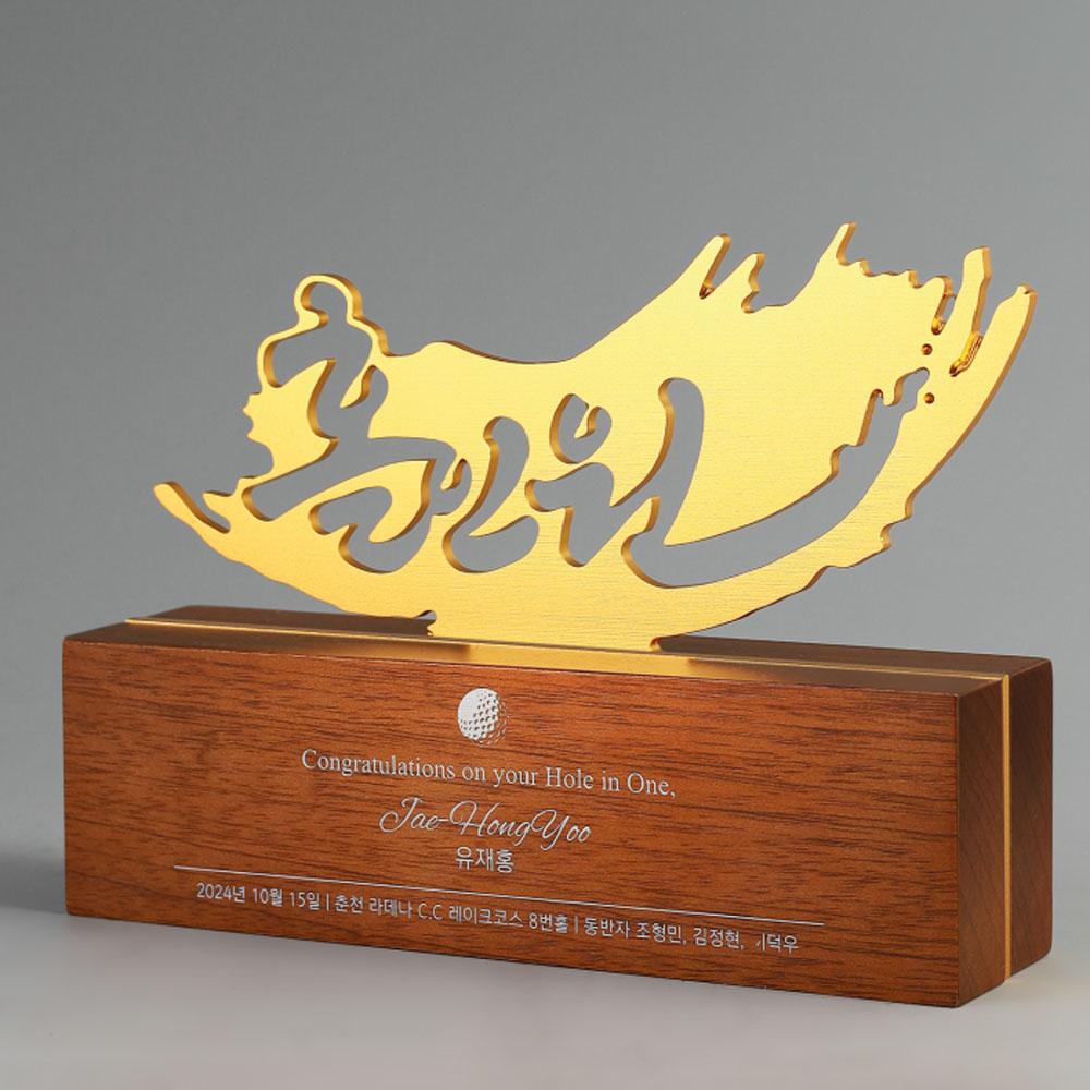 메탈&크리스탈 홀인원패 입니다. 돌출되는 메탈 조형물로 한글 '홀인원'을 형상화하였습니다.