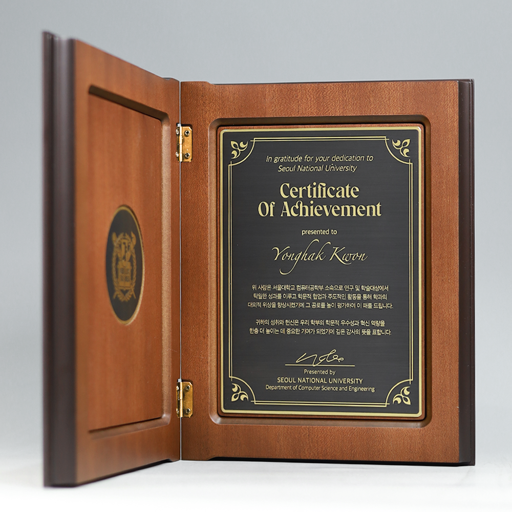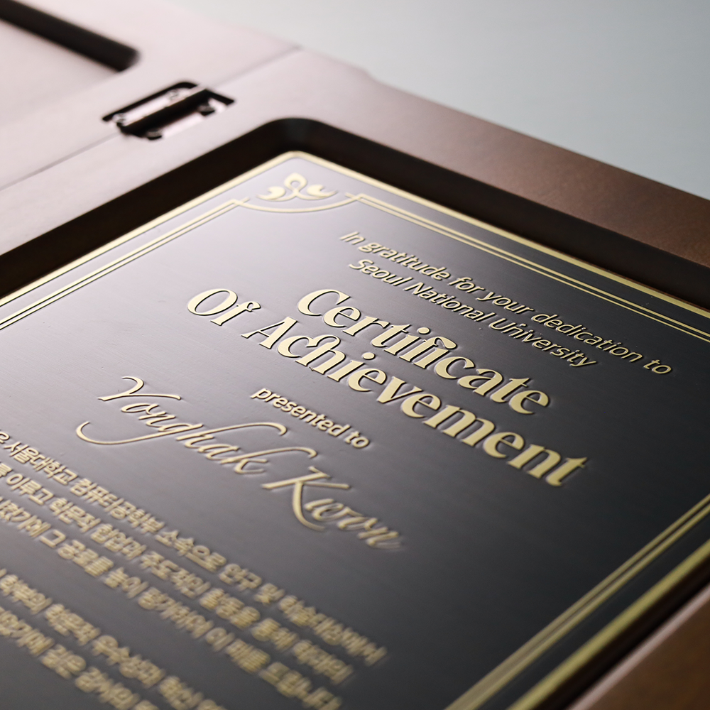 학위패 및 감사패, 기념패 등으로 사용하기 좋은 상패입니다. 무게감 있는 디자인으로 중요한 행사에 어울리는 황동양각상패 입니다.
