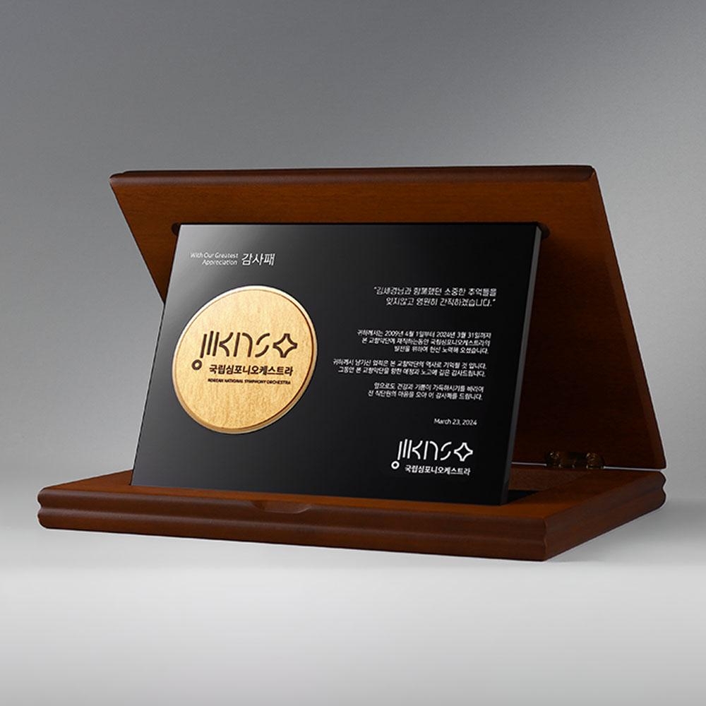 • 크리스탈 판에 순금박 메달, 나무재질 틀로 마감