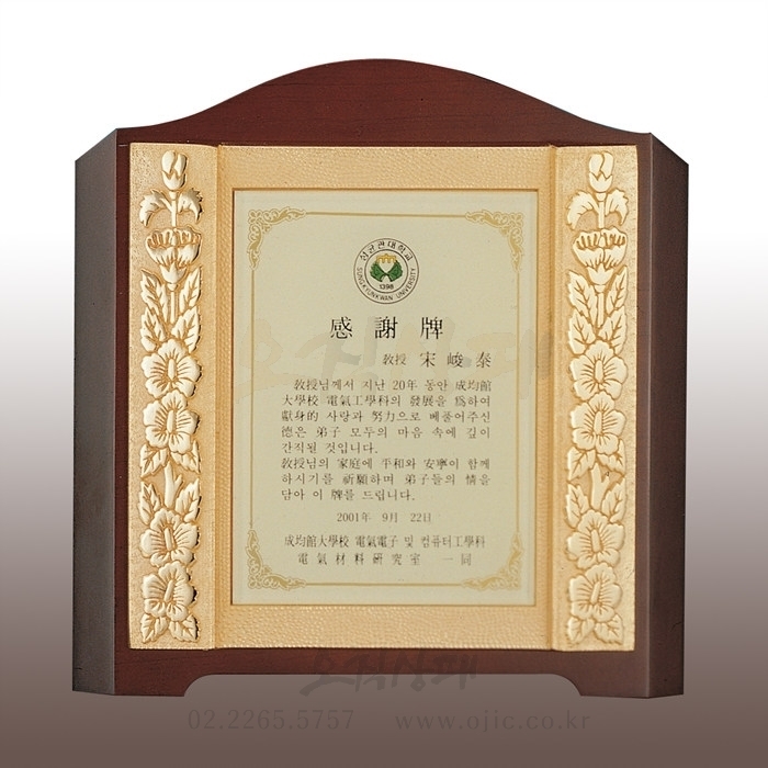• 짤프 재질 상패틀에 나무테두리가미, 알루미늄 문안판 접목
