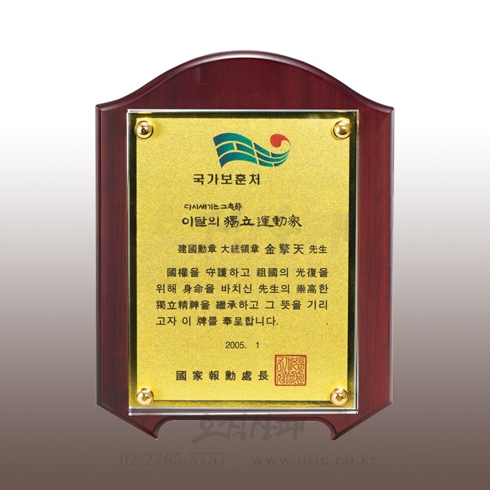 - 원목무늬 MDF 상패 틀에 알미늄 문안판 인쇄후 접목, 사각 크리스탈로 마무리
