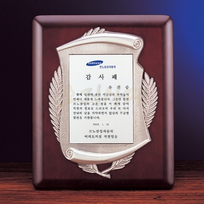 - 나무틀에 주석사출 상패틀 결합, 에칭 문안판 접목