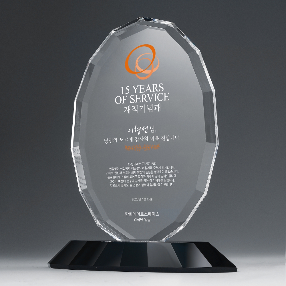 정갈한 컷팅과 블랙크리스탈받침의 조화로 감사패, 근속패, 기념패, 표창패 등으로 많이들 찾는 베스트셀러 모델중 하나인 크리스탈상패입니다.