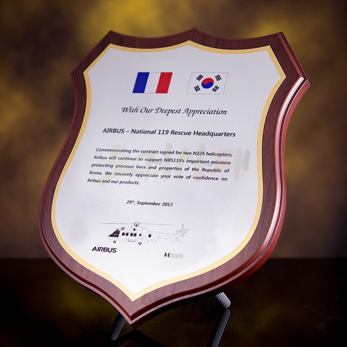 - 방패모양 나무틀에 최고급 금색.은색 메탈판 접목