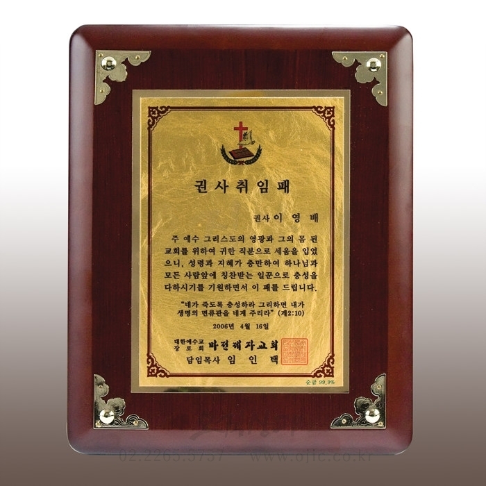 • 특수 금속판에 순금 접착, 나무 재질 틀로 마감