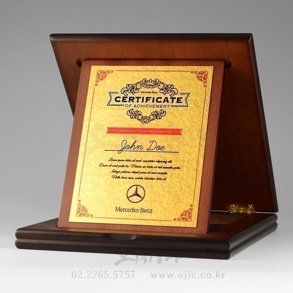 • 특수 금속판에 순금 압착, 나무 재질 틀로 마감
