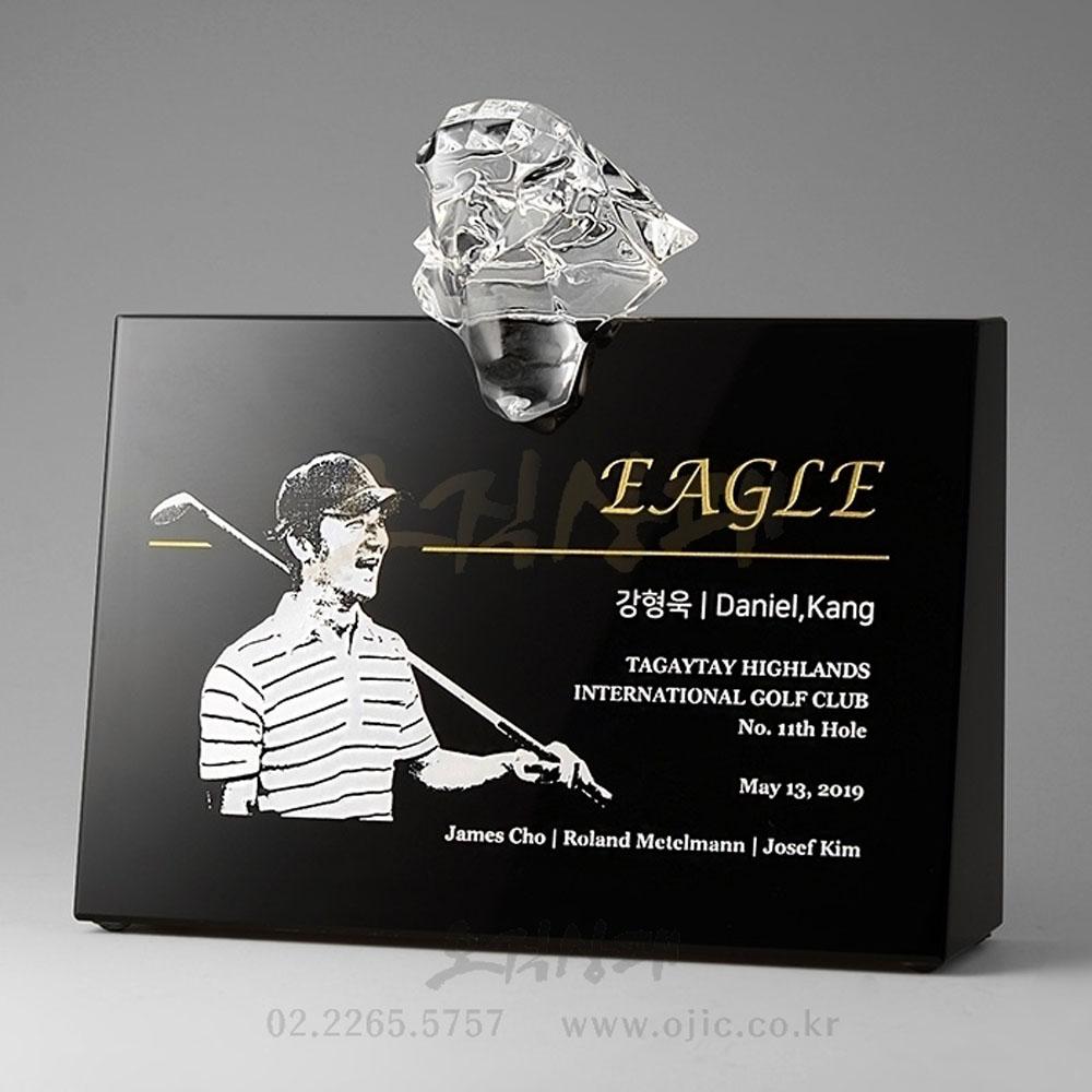 인물접목 이글패 입니다. 흔한 디자인이 아니라 상단 크리스탈독수리를 통해 이글패의 느낌을 극대화 시켜주는 골프상패입니다.