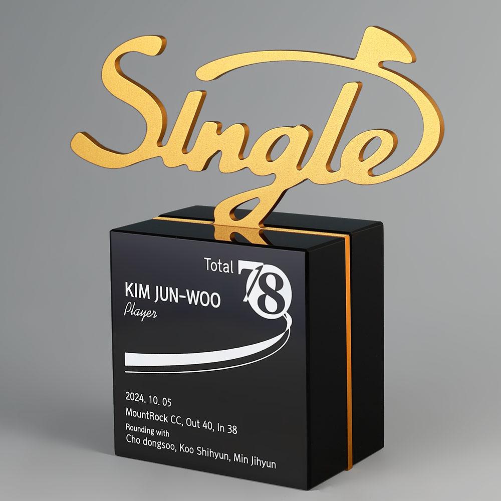 메탈&크리스탈 싱글패 입니다. 돌출되는 메탈 조형물로 SINGLE 글자를 형상화하였습니다.