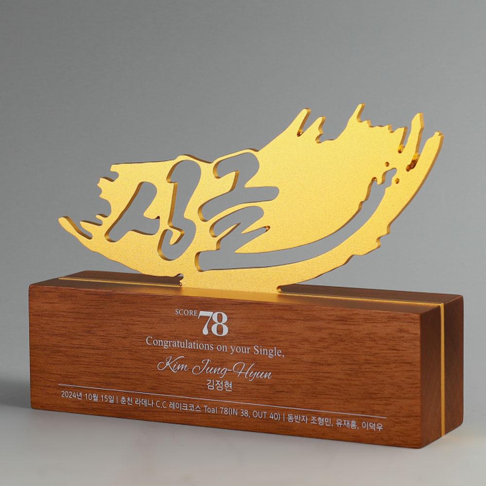 메탈&크리스탈 홀인원패 입니다. 돌출되는 메탈 조형물로 한글 '홀인원'을 형상화하였습니다.