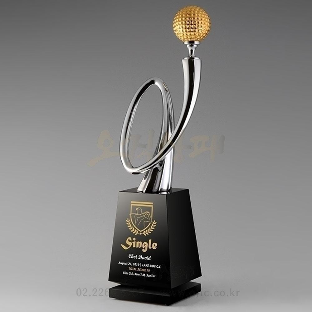 크롬조형물에 골프공이 접목된 골프트로피입니다. 이글패, 싱글패, 홀인원패 구애받지 않고 각종 골프패에 사용이 용이합니다.