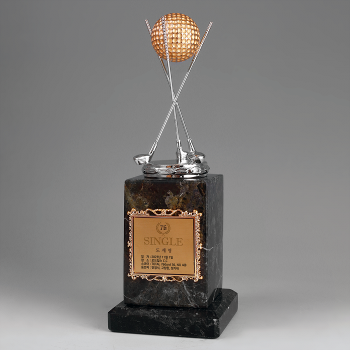 - 금속사출 후 도금 및 대리석받침에 금속 문안판 접목