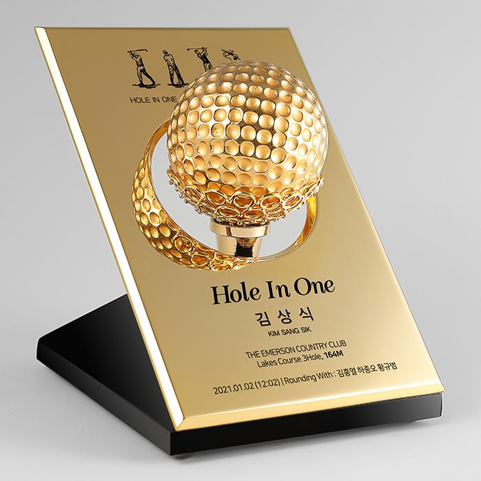 기하학적 조형의 순금도금 골프패입니다.싱글패, 싱글트로피로 특히 많은 선택을 받은 골프패 트로피입니다.