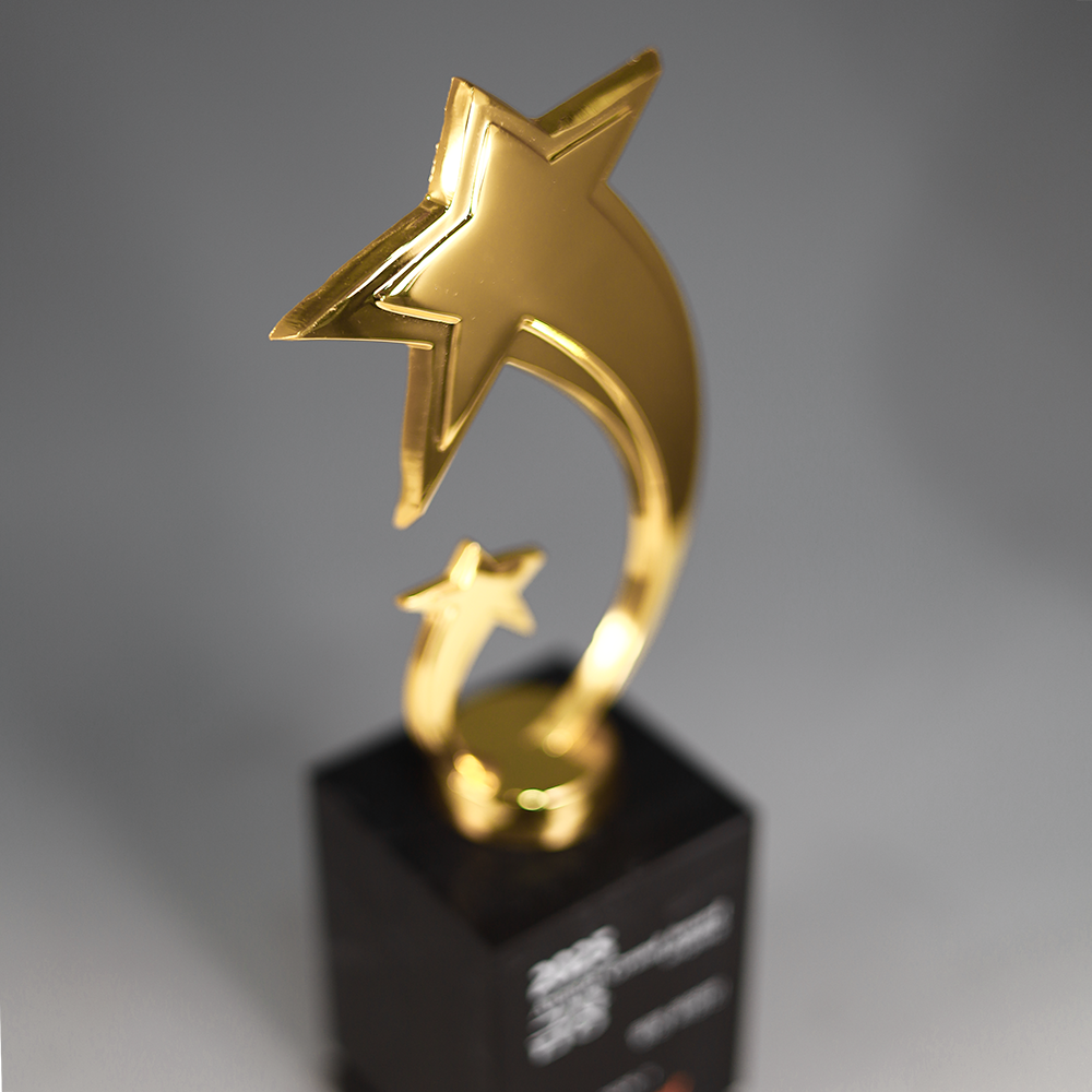 유니크한 별 조형의 상단부와 고급스러운 블랙 천연대리석 베이스가 조합된 디자인으로, 시상식 트로피 및 스포츠 트로피 제작에 적합한 금색, 은색, 동색 트로피시리즈 입니다.