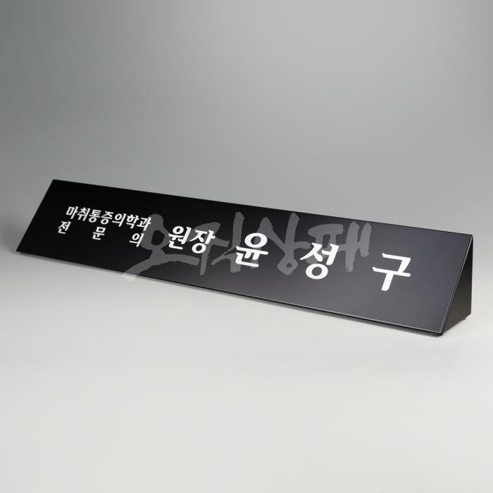 - 명패 글씨 색상은 어두운 색상의 책상에는 흰색 글씨가 잘 어울리며, 흰색 계통의 책상에는 검정색 글씨가 잘 어울립니다.
